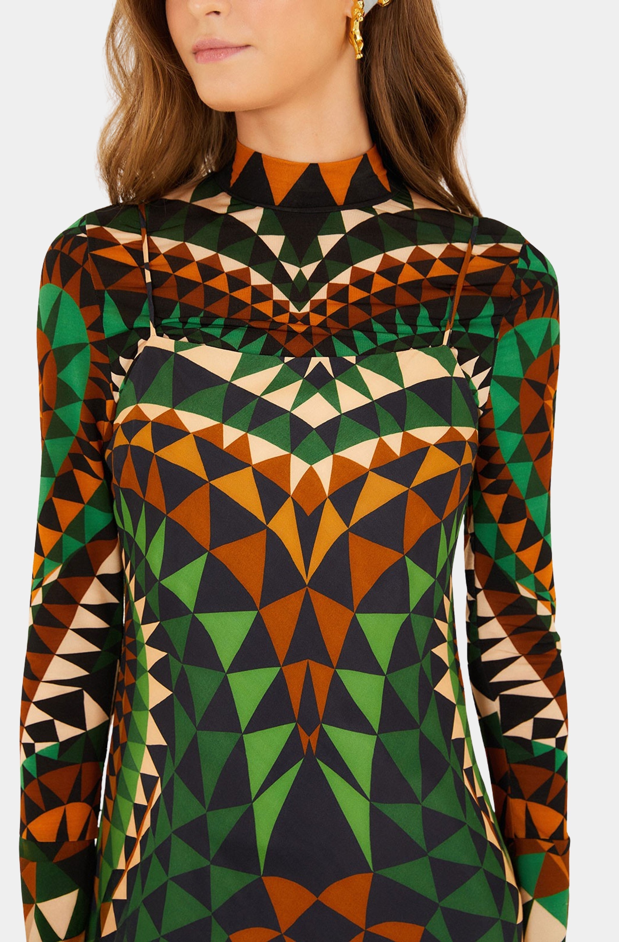 Farm Rio Heart Deco Green Slip Maxi Dress