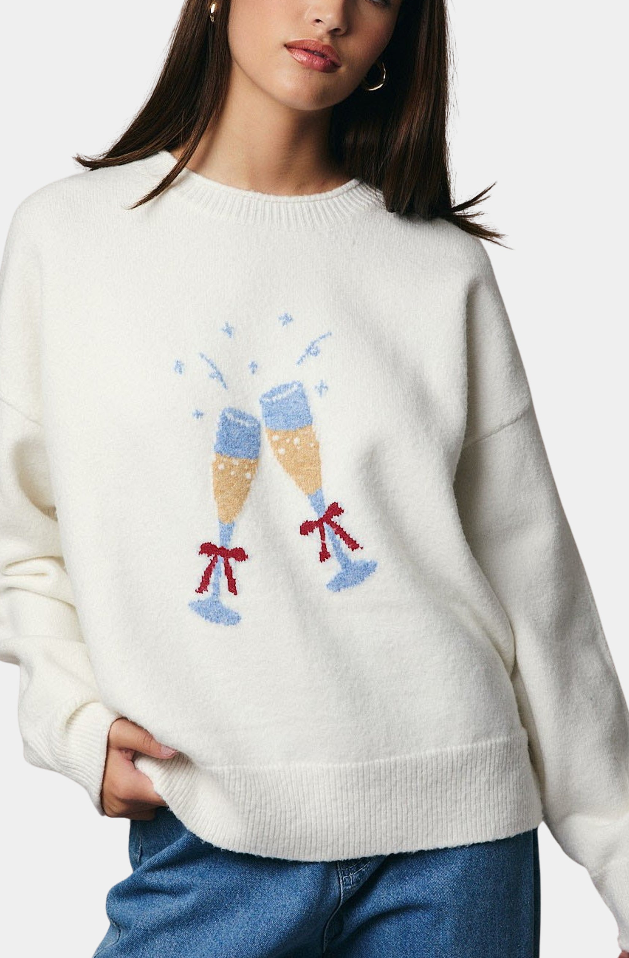 French Connection Babysoft Knit Embellished Bows Sweater